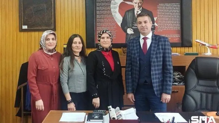 Milliyetçi Hareket Partisi İlçe Kadın Kolları Başkanı Zerrin Çimen ve yönetim kurulu üyeleri, 2021-2022 Eğitim Öğretim yılının ikinci yarısının ilk ders gününde, İlçenin en başarılı okulları arasında ilk sıralarda yer alan Ertuğrul Gazi okulu Müdürü Ahmet Öngel'i makamında ziyaret ederek başarılar diledi.