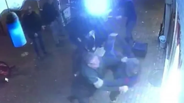 Bursa'nın İnegöl ilçesinde iki grup arasında çıkan kavgada 2 kişi çivili sopayla darp edilerek, kafasından ve gözünden yaralandı. Kavga anı bir iş yerinin güvenlik kamerasına saniye saniye yansıdı.