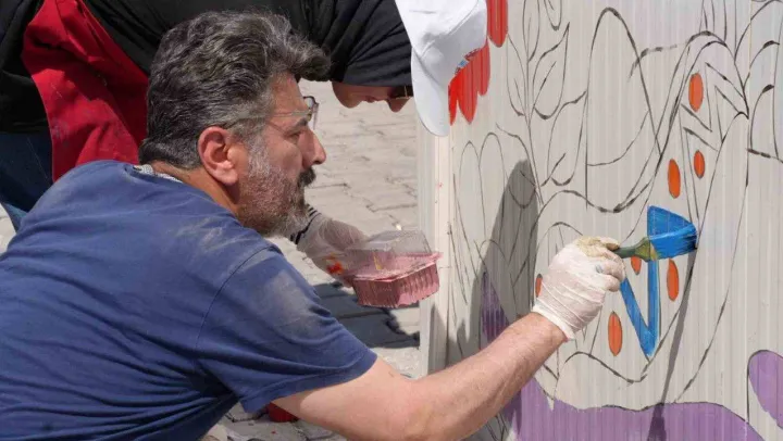 Çocuklar ATO'nun İskenderun'da kurduğu prefabrik yaşam alanını duvar resimleriyle canlandırdı