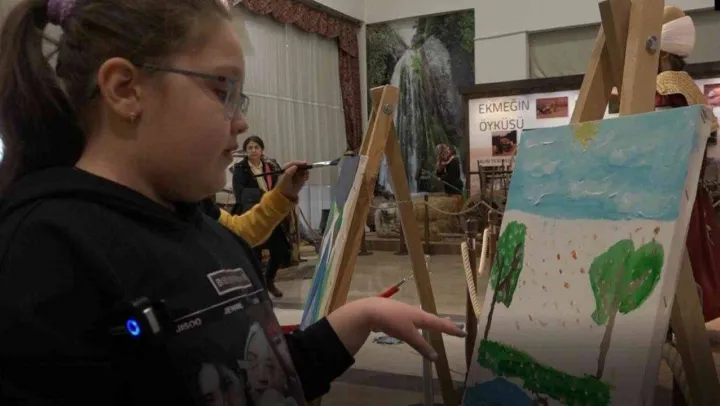 Bilecik Belediyesi Yaşayan Şehir Müzesinde bir araya gelen onlarca çocuk, özledikleri beklenen kar yağışını resim tuvallerine yansıtmaya çalıştılar.