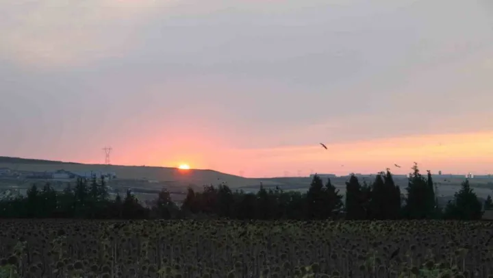 Türkiye'nin batısındaki Tekirdağ'ın Çorlu ilçesinde günbatımında ortaya çıkan eşsiz manzara, görenleri hayran bıraktı.