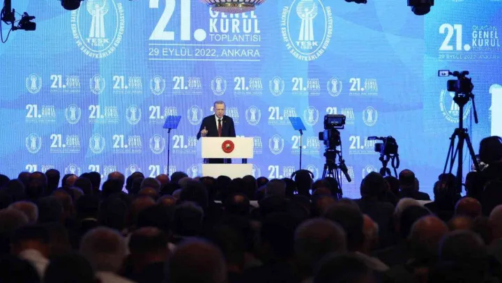 Cumhurbaşkanı Erdoğan, Ankara'da katıldığı Türkiye Esnaf ve Sanatkarlar Konfederasyonu (TESK) 21. Olağan Genel Kurulu'nda konuştu. 81 ilden gelen esnaf ve sanatkar odalarının temsilcileri ile federasyon yöneticilerine çalışmalarında başarılar dileyen Erdoğan, "Ülkemiz genelindeki esnaf ve sanatkarlarımızın tamamına Türkiye'nin büyümesi için yaptıkları katkılar için şükranlarımı sunuyorum. Türkiye'de esnaf kesimi dünyada hiçbir ülkede örneği olmayan bir tarihe, birikime sahiptir. Bizim kültürümüzde esnaf ve sanatkar sadece ticaret erbabı değildir. Sadece mal alıp satan tüccar değildir. Biz de esnaf tüm vasıflarının ötesinde öncelikle Ahi'dir, yani kardeştir" dedi.
