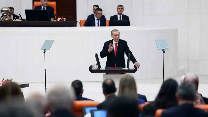 Meclisin her açılışında 103 yıl önceki heyecanı tekrar yaşadıklarını vurgulayan Erdoğan, 'Yeni yasama yılında teklifleriyle muvafık, muhalif görüşleriyle temsilcisi oldukları, milletle olan yakın irtibatlarıyla, milli iradenin üstünlüğü ilkesine bağlılıklarıyla bu çatı altında ülkemize, milletimize, şehirlerimize hizmet verecek, katkı verecek tüm milletvekillerimize başarılar diliyorum. Sizlerden milli ülkümüz olan Türkiye Yüzyılı vizyonuna yakışır fikri ve fiili eserler bekliyoruz. Binlerce yıllık devlet geleneğimizin iki asrı bulan demokrasi arayışımızın ilk yüzyılını geride bırakmak üzere olduğumuz cumhuriyetimizin çok partili siyasi hayata geçişle birlikte şekillenmeye başlayan demokratik teamüllerimizin, velhasıl göz kamaştırıcı milli hazinemizin en büyük mirası işte burasıdır, bu yüce kuruldur. Elbette her ülkenin meclisi kendi tarihi, kültürü, istiklali, bekası için önemlidir. Ancak Türkiye Büyük Millet Meclisimiz ilki milli mücadele, ikincisi 15 Temmuz'da olmak üzere iki defa gazilik payesiyle şereflenmiş, darbelerden cuntalara nice badireleri atlatarak dimdik ayakta kalmış, vesayetin tüm baskılarına rağmen daima milletin safında yer almayı başarmış bir kurum olarak tüm parlamentolar içinde özel bir yere sahip bulunduğuna inanıyorum. Milli Mücadele gibi bir destanı, yokluklar, ihanetler, karanlık hesaplar içinde zafere ulaştıran Meclisimizin bugün de Türkiye Yüzyılı'nın ufkunu aydınlatacağından şüphe duymuyorum. Artık ilk asrını tamamlayan cumhuriyetimizin hüdai naip değil binlerce yıllık zincirin son halkası olarak ilan ve inşa edildiği gerçeğini evlatlarımızın zihinlerine kazımamız gerekiyor. Gazi Mustafa Kemal'in 29 Ekim 1923 günü Meclis kürsüsünde dile getiren şu ifadeleri sizlere hatırlatmak, gençlerimizin de dikkatine getirmek istiyorum: 'Son senelerde milletimizin fiilen gösterdiği kabiliyet, istidat, idrak, kendi hakkında suizanda bulunanların ne kadar gafil ve ne kadar tetkikten uzak insanlar olduğunu pek güzel ispat etmiştir. Milletimiz haiz olduğu saf ve liyakatini, hükümetinin yeni ismiyle cihanı medeniyete daha çok suhuletle hisara muvaffak olacaktır. Türkiye Cumhuriyeti, cihanda işgal ettiği mevkiye layık olduğunu eserleriyle ispat edecektir. Bu yüce müesseseyi vücuda getiren Türk milletinin son 4 sene zarfında ihraz ettiği zafer, bundan sonra da birkaç misli olmak üzere tecellilerini gösterecektir. Milletin teveccühünü daima istinat noktası telakki ederek, hep beraber ileriye gideceğiz.' Cumhuriyetimizin kuruluşundan sonraki süreç gazinin hayal ettiği hızda ve içerikte yürümemiş olsa da bir asır sonra aynı hissiyatla burada buluşmamız, kurucu iradenin geçerliliğini sürdürdüğüne işaret ediyor. Nitekim tarihe baktığımızda geniş bir coğrafyada kurulan Türk devletlerinin büyük bölümünün ilk asrına gücünün zirvesinde girdiğini görüyoruz. Cumhuriyetimizin önünde kat edecek hala epeyce bir mesafe olması bize daha yapacak çok işimizin bulunduğunu anlatıyor. Kimsesizlerin kimsesi olarak tahayyül edilen cumhuriyetimiz inşallah bu vasfına tam manasıyla Türkiye Yüzyılı'nda kavuşacaktır' diye konuştu.