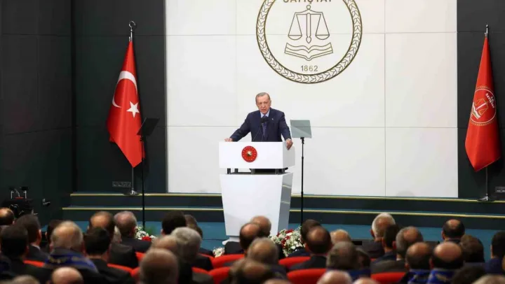 6 Şubat depremleriyle ehemmiyetini daha iyi anladığımız kentsel dönüşüm projeleri ile ilgili hukuku düzenlemelerin akim bırakıldığını söyleyen Erdoğan, '17- 25 aralıkta yargı - emniyet darbe girişimine 15 Temmuz'da 252 insanımızın şehit edildiği kanlı bir darbe teşebbüsüne maruz kaldık. Bunların dışında gizli açık bir çok antidemokratik operasyonun hedefi olduk. Tüm bu girişimleri son 21 yılda hep hukuk, demokrasi ve meşruiyet zemininde kalarak bertaraf etmeye çalıştık. Ne baskılar karşısında boyun eğdik. Ne de hukuk devleti ilkesinin yara almasına müsaade ettik. Ne Anayasamızın vermediği bir yetkiyi kullandık, ne de milletin emanetinin gasp edilmesine göz yumduk. Yasama, yürütme ve yargı organları arasındaki fay hatlarını kapatarak tüm alanlarda tarihi nitelikte reformlara , eserlere, yatırımlara imza attık. Son 21 yılda ülkemizde büyük bir zihniyet devrimi gerçekleştirdik. Uzun uğraşlar sonucunda devletin tüm kurumlarının hedef birliği, anlayış ve gaye birliği içinde ahenkle çalışmasını temin ettik' şeklinde konuştu.