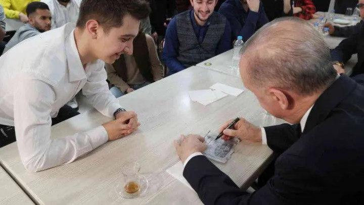 İftarda konuşan Cumhurbaşkanı Recep Tayyip Erdoğan, “Bizim okul hayatımız Türkiye'nin siyasi, sosyal ekonomik bakımdan gerçekten çok çalkantılı ve sıkıntılı bir döneminde geçti. Bir yandan ideolojik gerilimlerin ve kavgaların, diğer yandan yokluğun, yoksulluğun hepsinin üzerine bir de 12 Eylül darbesi baskısı altında eğitimimizi tamamlamaya çalıştık. Bizim evlatlarımızda hem koalisyonların yol açtığı istikrarsızlığın hem de vesayetin tüm çirkin yüzünü sergilediği siyasi ve sosyal çalkantıların gölgesinde eğitim öğretim hayatlarını sürdürdüler. Özellikle kız evlatlarımın yaşadığı sıkıntıları ve onları aşmak için çektiğimiz çileyi asla unutamam. Kızlarımızın anneleri okul kapılarında kızlarımızı almak için beklerlerdi. Bir taraftan polis, bir diğer taraftan kızlarımızın anneleri. Sizler ise çoğunlukla hayatını gözlerini AK Parti döneminde gözlerini açmış bir nesilsiniz. Ülkemizi ve dünyayı AK Parti'nin ülkemize kazandırdığı eserlerden ve hizmetlerden gördünüz, tanıdınız. Bu süreçte sizlerde elbette ülkemizin yaşadığı farklı sınamalar şahit oldunuz. 15 Temmuz darbe girişimi başta olmak üzere son 7-8 yıldır yaşanan hadiseleri hatırlıyorsunuz. Türkiye bir taraftan son iki asrın demokrasi ve kalkınma eksikliklerini tamamlamak için gece gündüz çalışırken, diğer taraftan da bu tür yeni tehditlerle mücadele ederek bu günlere geldi. Ülkemizi bundan 11 yıl önce milletimize ilan ettiğimiz 2023 hedeflerine ulaştırmak için gerçekten çok çalıştık. Çok engel aştık, çok eser ve hizmet ürettik. Amacımız sizlere 2053 vizyonunu hayata geçirebileceğiniz Büyük ve güçlü bir Türkiye bırakmaktı. Hamdolsun gittiğim her yerde burada da gayretleriyle, birikimleriyle, azimleriyle heyecanlarıyla 2053 vizyonuna sahip çıkacak bir gençlik görüyorum. Birileri farklı konuşabilir, ama ben bu gençliğe Teknofest gençliği diyorum. Zira sizler artık uzayı okuyorsunuz. Artık sizler uzaya bu milletin veya gençliğin göndereceği uzay araçlarının bütün tanzimini hesaplamalarını ve bu hesaplarla birlikte onların hazırlığını yapıyorsunuz. Teknolojiden edebiyata, spordan sanata her alanda gençlerimizin ülkemiz sınırlarını aşan başarılarıyla gurur duyuyoruz” dedi.
