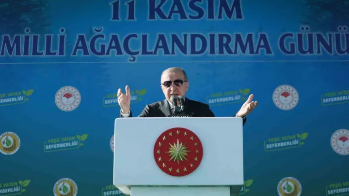 Cumhurbaşkanı Recep Tayyip Erdoğan, 11 Kasım Milli Ağaçlandırma Günü Programı'nda konuştu. Cumhurbaşkanı Erdoğan, 81 il 922 ilçede, 7'den 70'e birlik olunduğunu belirterek, 'Yeşil Vatan Seferberliği'ne katılmaktan duyduğum memnuniyeti belirtmek istiyorum. Bugün burada sadece bir tören için değil, geleceğimize nefes olmak, vatanımıza can katmak için bir aradayız. 11 Kasım Milli Ağaçlandırma Günü'müzün ülkemiz, milletimiz ve çevremiz için hayırlara vesile olmasını diliyorum. Toprağı fidanlarla buluşturma gayesiyle ağaç dikme alanlarına akın eden tüm vatandaşlarımıza buradan teşekkürlerimi gönderiyorum' dedi.