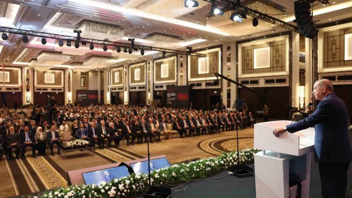 6 Şubat'ta yapıların önemli kısmının şiddetli depreme dayanıklı olmadığını gördüklerini ifade eden Erdoğan, 'Yıkılan yapıların yüzde 90'dan fazlası 1999 öncesi inşa edilenlerdir. Kahramanmaraş merkezli 6 Şubat depremlerinde 680 bini konut, 170 bini ticari alan olmak üzere 850 bin bağımsız bölüm kullanılamaz hale gelmiştir. Depremden etkilenen nüfus sayısı 14 milyonu buluştur. İfade ettiğimiz rakamlar Avrupa'daki kimi ülkelerin toplam konut ve ticari alan büyüklüğünden fazladır. Biz 6 Şubat depremlerinin ardından orta büyüklükteki ülkeyi yeni baştan inşa etmekle karşı karşıya kaldık. Şu ana kadar afet bölgesinde 200 bin konutun inşasına başladık. 210 bin konut için de yerinde dönüşüm başvurusu aldık. Yerinde dönüşüm projeleri bakanlığımızın sıkı denetimi altında yürütülecektir. Rezerv alanlarda yeni temeller atmayı sürdürüyoruz. Önümüzdeki aylarda inşası tamamlanan konutları hak sahiplerine teslim edeceğiz. Amacımız temeli atılan her konutu 1 yıl içerisinde hak sahibine teslim etmektir. Konut inşaatları bitene kadar depremzedelerimizin tüm ihtiyaçlarını karşılayacak mekanizmaları da oluşturduk. Bugün itibariyle bölgede yaklaşık 186 bin konteynerden oluşan 345 konteyner kent kurduk. Artık çadır yok. Çadırları kaldırdık. Rekor sıcaklar yaşandığı için konteynerlerin 160 bine yakınına klima taktık. Faaliyette olan konteyner kentlerimizde 580 bin vatandaşımız barınıyor.' açıklamasında bulundu.