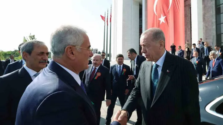 Kapsayıcı bir yeni Anayasa için sürece herkesi katkı sunmaya davet eden Erdoğan, 'Siyasi hayatımızın her döneminde dile getirdiği- hükümet teklifi olarak da 2011'den beri her seçimde milletimizin önüne koyduğumuz- bir hayalimiz var. Bu hayal Türkiye'yi darbe anayasası ayıbından kurtaracak yeni, sivil, dili ve içeriğiyle bugünü ve yarını kucaklayan, Türkiye Yüzyılı'na yakışır bir Anayasa'ya kavuşturmaktır. Darbe anayasasının gölgesinde Türkiye Yüzyılı'nı konuşmayı, ülkemiz ve demokrasimiz için zül addediyoruz. İstiklal ve istikbali için bu kadar ağır bedeller ödemiş milletimizin yeni bir Anayasa'yı anasının ak sütü gibi hak ettiğine inanıyoruz. Milletimize vaadimiz olan birinci sınıf demokrasi, birinci sınıf ekonomi ve birinci sınıf özgürlüklerin tamamlayıcısı birinci sınıf anayasa olacaktır. Türkiye Yüzyılı vizyonumuz, böyle bir Anayasa'yla daha güçlenecektir. Bunun için 85 milyonun tamamının sahipleneceği ve 'İşte benim Anayasam' diyerek baş tacı edeceği bir metni artık milletin takdirine sunmamız gerekiyor. Buradan, siyasi partilerimizi, yüksek mahkemelerimizi, üniversitelerimizi, devlet kurumlarımızı, barolarımızı, meslek kuruluşlarımızı, sivil toplum örgütlerimizi ve milletimizin her bir ferdini bu sürece katkı vermeye davet ediyorum. Meclisin açılışıyla birlikte Türk demokrasisini yeni bir Anayasa'ya kavuşturmak için girişimlerimizi tekrar başlatacağız. Yargı kurumlarımızın temsilci olarak sizlerden de bu sürece hazırlıklı olmanızı, destek vermenizi bekliyorum' dedi.