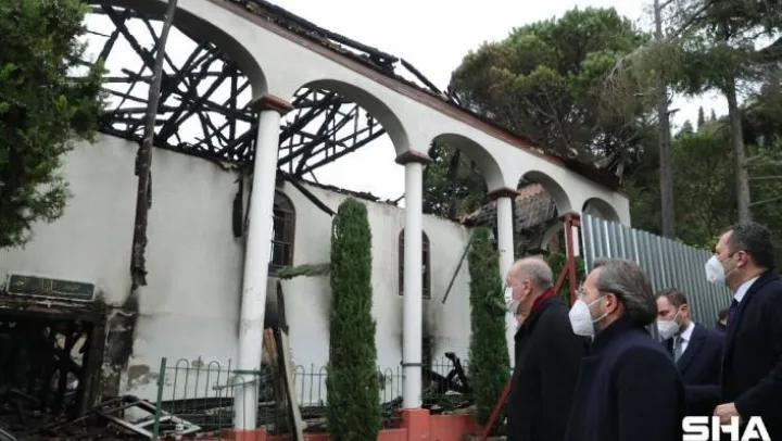 Cumhurbaşkanı Recep Tayyip Erdoğan, geçtiğimiz gün yanarak büyük hasar gören tarihi Vaniköy Camii'de incelemelerde bulundu.
