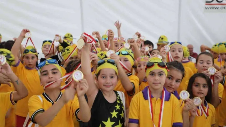 Cumhuriyet Bayramı'nda 320 minik yüzücü kıyasıya mücadele etti