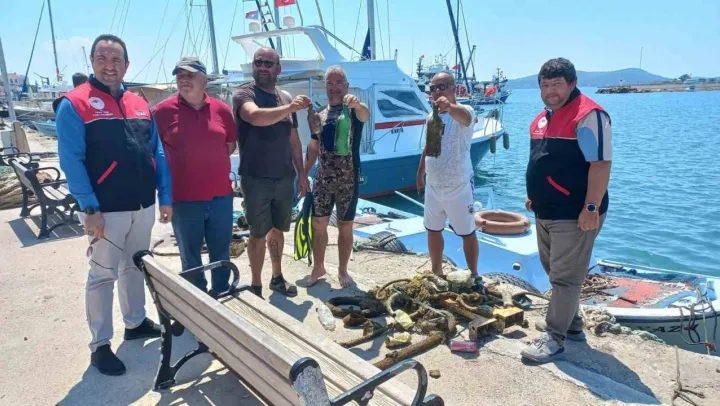 Cunda Adası'nda deniz dibi temizliği yaptılar