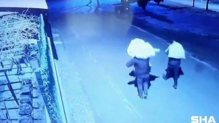 Yapılan kamera incelemelerinde 2 şahsın çuvallarla hırsızlık yaptıktan sonra sokakta ilerlediği anlar saniye saniye kameralar tarafından kaydedildi.