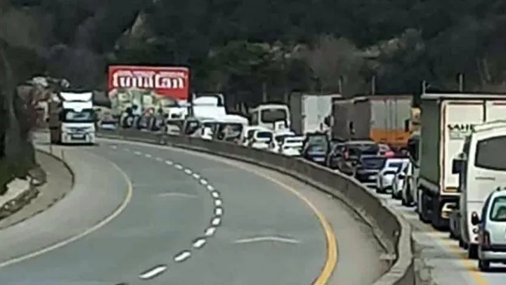Sakarya'nın Geyve ilçesi D-650 karayolunda kontrolden çıkan tır şarampole devrildi. Meydana gelen kaza sonrasında Adapazarı istikametinde uzun araç kuyrukları oluştu.