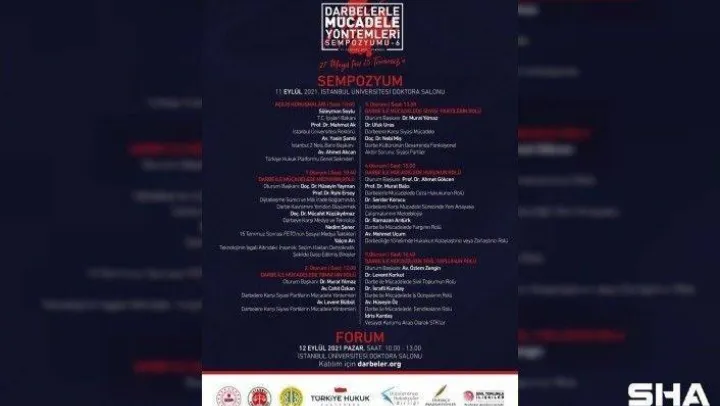 Darbelerin meydana gelmesini önleyecek tedbirlerin konuşulması ve bu bağlamda çözüm önerilerinin getirilmesine yönelik '27 Mayıs'tan 15 Temmuz'a Darbelerle Mücadele Yöntemleri Sempozyumu ve Forumu' gerçekleştirilecek. Bu yıl altıncısı düzenlenecek olan sempozyumlar dizisinin 11-12 Eylül 2021 yılı programında açılış konuşmalarının İçişleri Bakanı Süleyman Soylu, İstanbul Üniversitesi Rektörü Prof. Dr. Mahmut Ak, İstanbul 2 No'lu Baro Başkanı Av. Yasin Şamlı ve Türkiye Hukuk Platformu Genel Sekreteri Av. Ahmet Akcan tarafından yapılması bekleniyor. Darbe ile Mücadelede Medyanın Rolü, Darbe ile Mücadelede TBMM'nin Rolü, Darbe ile Mücadelede Siyasi Partilerin Rolü, Darbe ile Mücadelede Hukuk'un Rolü ve Darbe İle Mücadelede Sivil Toplumun Rolü başlıklı beş oturumlu sempozyumun ardından Darbelerle Mücadele Yöntemleri Forumu düzenlenecek.