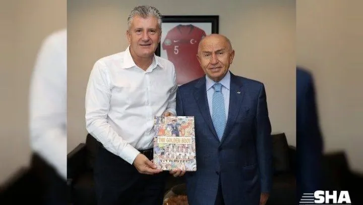 Başkan Nihat Özdemir, Davor Suker'e A Milli Takım forması hediye ederken, Suker de Başkan Özdemir ve Servet Yardımcı'ya kendi yazdığı 'The Golden Boot' isimli kitabını takdim etti.