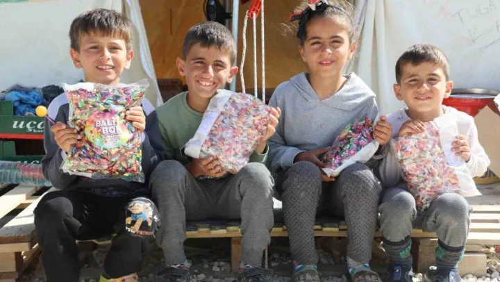 Bayram şekeri ve çikolatalarını çadır kentte Kocaeli Büyükşehir Belediyesi'nden alan Defneli çocuklar, büyük bir mutluluk yaşadı.