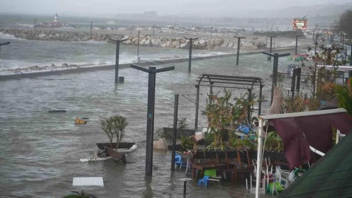 Deniz taştı, kordon sular altında kaldı