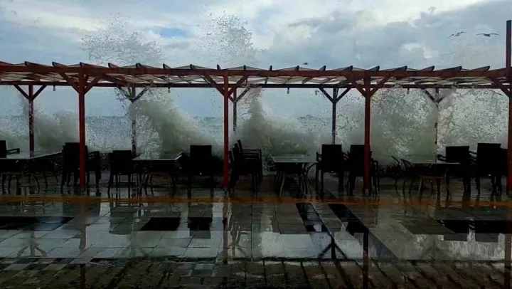 Zaman zaman boyu yaklaşık 5 metreye kadar çıkabilen dalgalar, sahil kıyısındaki demir korkulukları ve duvarları da aşarak sahil alanına aktı. Sahil alanının suyla kaplanırken, vatandaşlar zor anlar yaşadı.