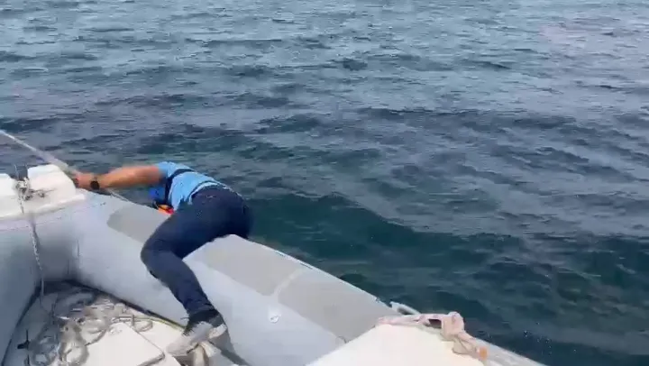 Bursa'da Sualtı Grup Amirliğine bağlı dalgıç polisler, denizde mahsur kalan bir martıyı kurtardı. O anlar kameraya yansıdı.