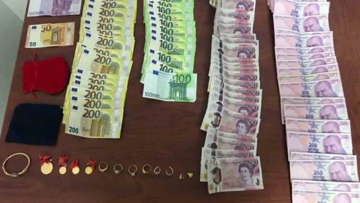Araç sürücüsü Emrah Güney, yanında annesi ve çocukları araçtan indirildi. Araç içerisinde ve şahısların üzerinde yapılan kontrolde, annesi üzerinde, çalınan malzemeler 4 adet altın yüzük, 2 çift altın küpe, 3 çeyrek altın, altın bilezik, bir tam altın, 2 bin 400 Sterlin, 8 bin 150 Euro, 8 bin Türk Lirası ele geçirildi.