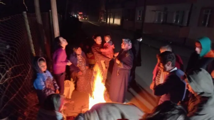 Panikle sokağa çıkan vatandaşlar ise ısınmak için ateş yaktı. Tedbir amaçlı evlerine girmeyerek battaniyelerine sarılan vatandaşlar, sokakta bekliyor.