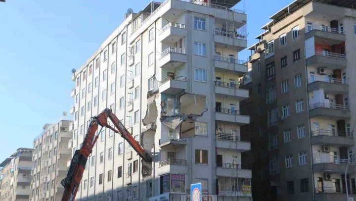 Diyarbakır'da çökme tehlikesi olan 9 katlı Altınkaya apartmanının yıkımına başlandı.