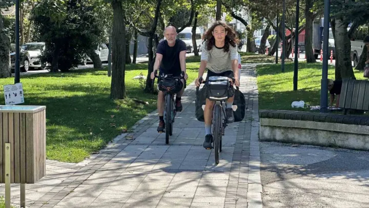 Fransız baba-oğul 6 Şubat'ta meydana gelen Kahramanmaraş merkezli depremlerden etkilenenlere yardım toplamak ve bölgenin ihtiyaçlarına dikkat çekmek için Paris'ten İstanbul'a bisikletle geldi.