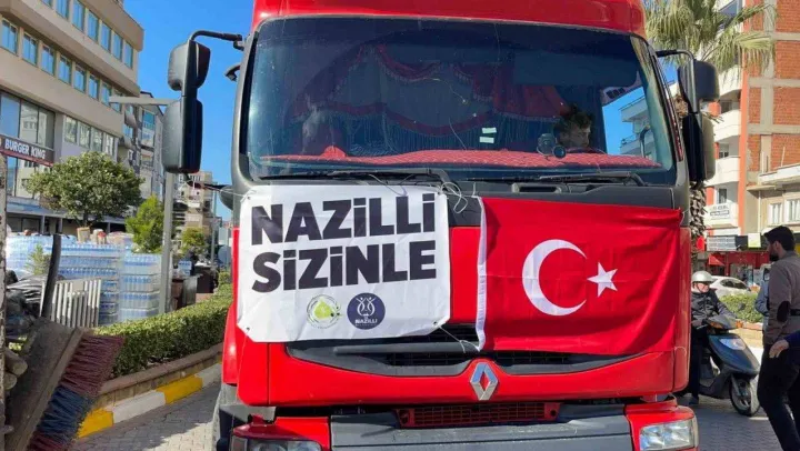 Nazilli Belediyesi ve Nazilli Kaymakamlığı'nın ortaklaşa yürüttüğü yardım kampanyası çerçevesinde 58 saatte 58 araçlık yardım toplanarak deprem bölgesine ulaştırılmak üzere yola çıktı. 6 Şubat Pazartesi günü sabah saatlerinde ilk yardımların toplanmaya başladığını ve araçlar dolar dolmaz deprem bölgesine gönderildiğini belirten Belediye Başkanı Kürşat Engin Özcan; 'Çok şükür TIR'larımızın bir kısmı deprem bölgesine ulaştı. Yardımlarımız vatandaşlarımıza dağıtıldı. Görüntüler geldikçe bizler de burada bir nebze olsun rahatlıyoruz. Depremden sağ çıkan vatandaşlarımızın üşümemesi, karınlarının doyması burada daha güçlü çalışmamıza vesile oluyor. Yardımların 3. gününde hala vatandaşlarımız destek olmaya, meydanı doldurmaya devam ediyor. Allah hepsinden razı olsun' dedi.
