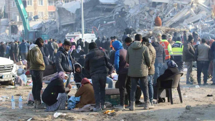 Odabaşı Mahallesi'nde yerle bir olan yüzlerce binanın arasında kalan boş alanda bekleyen çok sayıda kişi, gece gündüz enkaz yığınına dönen evlerinin önünden ayrılmıyor. Arama kurtarma ekiplerince bir yandan enkazlar arasında arama kurtarma çalışmaları devam ederken, diğer yandan da beton ve kum yığınına dönen binalar önünde toplanan kalabalık gelecek müjdeli haberi bekliyor.
