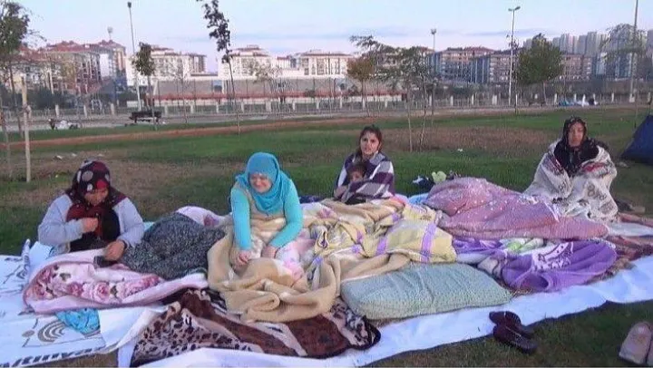 İstanbul Silivri açıklarında dün yaşanan 5.8 şiddetindeki deprem ve ardından yaşanan artçı depremler nedeniyle Silivri'de vatandaşlar gece parklarda geçirdi. Kimileri çadır kurarak içinde kalırken, kimileri ise battaniyelere sarılarak çimlerin üzerinde uyudu. Devriye gezen polis ekipleri ise sürekli olarak vatandaşlara anonslar yaparak, şüpheli kişileri bildirmelerini ve dikkatli olmaları uyarısında bulundu. Geceyi parkta geçiren vatandaşlar günün ilk ışıklarıyla birlikte uyandı. Battaniyelerini toplayan ailelerden bazıları eşyalarını evlerine götürürken, bazıları ise parkta oturmaya devam ediyor.