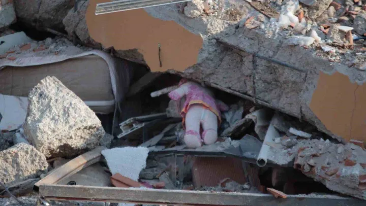 Geçtiğimiz pazartesi günü öğle saatlerinde meydana gelen 7.6 büyüklüğündeki depremin merkez üssü olan Kahramanmaraş'ın Elbistan ilçesi sessizliğe büründü. Ekiplerin çöken binaların enkazlarındaki çalışmaları sürerken, yarısı enkazın altında kalmış oyuncak bebeği görenlerin ise yüreği burkuldu.
