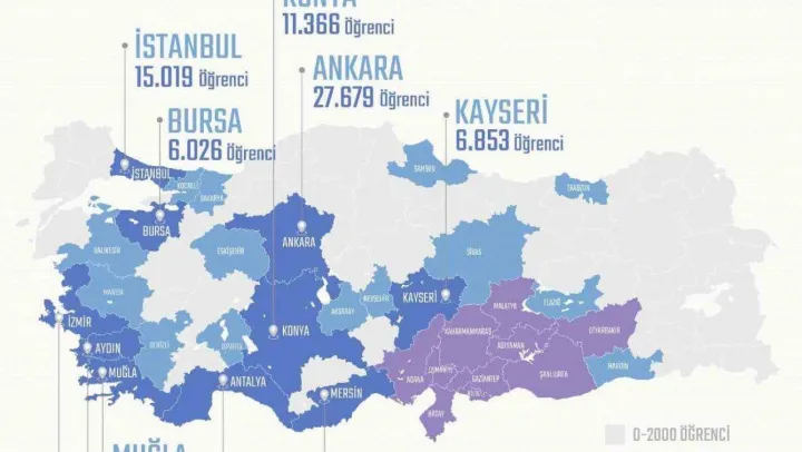 'Ankara, 27 bin 679 öğrenciyle nakil yapılan ilk beş il sıralamasında öğrencilerin en fazla nakil yaptıkları il oldu. Antalya 18 bin 922, Mersin 18 bin 878, İstanbul 15 bin 19, Konya ise 11 bin 366 öğrenci ile en fazla nakil yapılan iller oldu. Bursa'ya ise 6 bin 26 öğrencinin nakili sağlandı.'