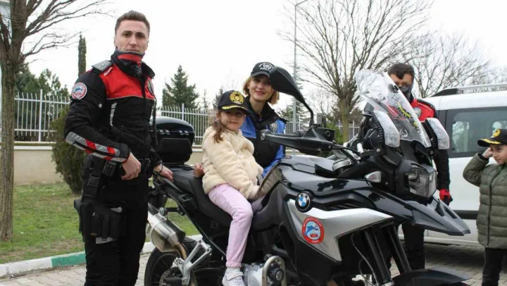 Etkinlikte çocuklara uçurtma, polis şapkası ve şeker hediye edildi.