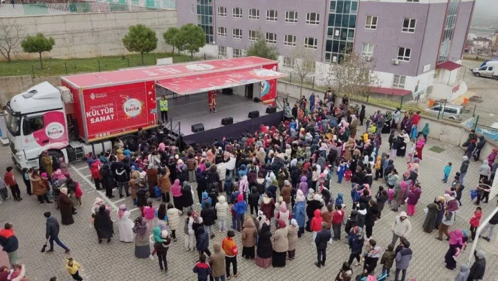 Depremzede çocukların yüzünü Ümraniye Belediyesi eğlence tırı güldürüyor
