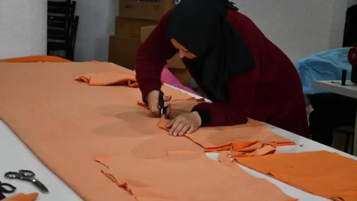 Düzce Belediyesi tüm imkanlarını Türkiye'yi derinden sarsan iki büyük depremde evlerini kaybeden depremzedeler için seferber etmeye devam ediyor. Afetzedelerin ihtiyaçlarını tespit ederek organize olan BELMEK ile Halk Eğitim Merkezi Müdürlüğü eğitmen ve kursiyerleri makinelerin başına geçerek eşofman dikimine başladı.