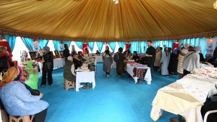 DERMEK kursiyerlerinin hazırladığı el emeği, göz nuru eserlerin yer aldığı Kadın Emeği Çarşısı açıldı. Birbirinden güzel eserlerin yer aldığı çarşıda ürünlerini satacak olan kursiyerler el emeklerini kazanca dönüştürecek.