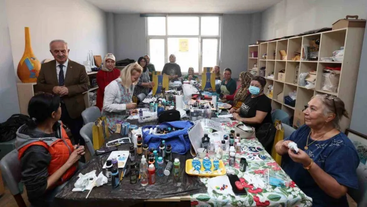 DER-MEK çatısı altında hizmet veren Yenikent, Sırrıpaşa, Kusachi, Fatih, Çınarlı ve Mersincik kurs merkezlerini ziyaret eden Başkan Aygün, 'Kurslarımızda sosyal belediyecilik anlayışı içerisinde çok güzel eserler ortaya çıkıyor. Bu çalışmalarda emeği geçen tüm kursiyerlerimizi ve usta öğreticilerimizi kutluyorum. Ayrıca kurslarımızda hazırlanan el emeği, göz nuru eserleri kazanca dönüştürmeleri için Harikalar Sahili ve Kent Meydanı'nda açtığımız stantlarımızla kursiyerlerimizi desteklemeye devam ediyoruz. Bizler bugüne kadar olduğu gibi bundan sonra da her zaman DER-MEK ailemizin yanında olmaya devam edeceğiz' dedi.