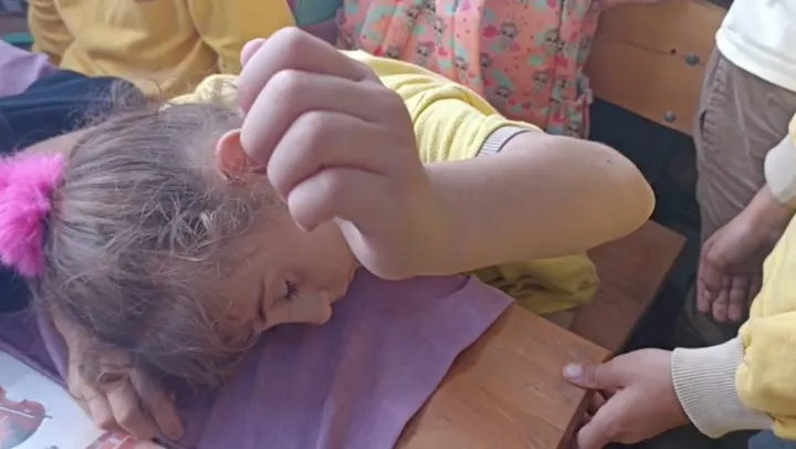 Sultangazi'de ders sırasında uyuma numarası yapan 2. sınıf öğrencisi minik kızın oyunu, öğretmen ve arkadaşlarının yaptıkları eğlenceli şakayla ortaya çıktı. Öğretmeninin Kolunu kaldıracağım, eğer havada duruyorsa gerçekten uyuyordur sözlerinin ardından kolu havada kalan küçük kızın komik anları cep telefonu kamerasına yansıdı.