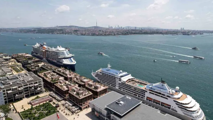 İstanbul dev kruvaziyer gemilerinin ana limanı olarak öne çıkıyor. Karaköy Galataport Limanı'na demirleyen iki kruvaziyer gemisi İstanbul'un eşsiz manzarasıyla buluştu.
