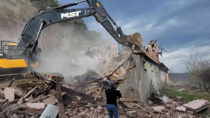 Devlet ormanında inşa edilen kaçak yapılara yıkım