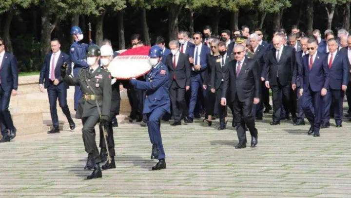 TBMM Başkanı Mustafa Şentop, beraberindeki devlet erkanı ile birlikte 23 Nisan Ulusal Egemenlik ve Çocuk Bayramı dolayısıyla Anıtkabir'i ziyaret etti. TBMM Başkanı Mustafa Şentop başkanlığındaki heyet, Cumhurbaşkanı Yardımcısı Fuat Oktay, CHP Genel Başkanı Kemal Kılıçdaroğlu, MHP Genel Başkanı Devlet Bahçeli, İYİ Parti Genel Başkanı Meral Akşener, Cumhurbaşkanlığı Kabinesi üyeleri, yüksek yargı temsilcileri, siyasi parti temsilcileri ile birlikte Aslanlı Yol'dan yürüyerek Atatürk'ün mozolesine geldi. Mozoleye çelenk bırakılmasının ardından saygı duruşunda bulunuldu ve İstiklal Marşı okundu. Heyet, daha sonra Misak-ı Milli Kulesi'ne geçti ve TBMM Başkanı Şentop burada Anıtkabir Özel Defterini imzaladı.