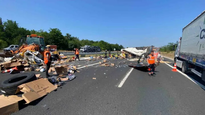 Devrilen tır İstanbul-Edirne Otobanı'nı kapattı