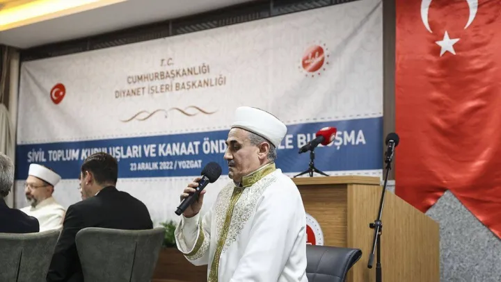 Diyanet İşleri Başkanı Prof. Dr. Ali Erbaş, Yozgat'ta kanaat önderleri ve sivil toplum kuruluşlarının temsilcileriyle bir araya geldi. Erbaş, yaptığı konuşmada, 'İçinizden hayra çağıran, iyiliği emreden, kötülükten men eden bir ümmet bulunsun. Onlar kurtuluşa ereceklerdir' ayet-i kerimesine atıfta bulunarak, 'Biz de hayra çağırmak, iyiliği emretmek, kötülükten men etmek için Türkiye içinde 150 bin kişilik mensubumuzla ve Türkiye dışında 120 kadar ülkede 2 bin 500 hocamızla bu vazifeyi yerine getirmeye çalışıyoruz' dedi.