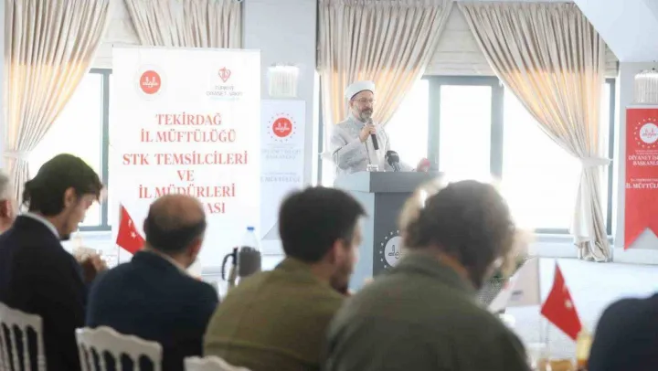 Diyanet İşleri Başkanı Erbaş, 'il buluşmaları' çerçevesinde geldiği Tekirdağ'da sivil toplum kuruluşlarının temsilcileri ve kurum müdürleriyle bir araya geldi. Burada yaptığı konuşmada, Türkiye'de 28 milyon öğrenci olduğunu ve bu sayının dünyadaki 100 ülkenin nüfusundan daha büyük olduğunu belirten Erbaş, 'Bizim için büyük bir zenginlik ama gençlerimize sahip çıkarsak bu zenginlikle iftihar edebiliriz, sevinebiliriz' diye konuştu.