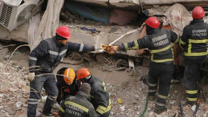 Merkez üssü Kahramanmaraş'ın Pazarcık ve Elbistan ilçeleri olan, 10 ili etkileyen 7.7 ve 7.6 büyüklüğündeki depremlerin ardından Diyarbakır'da yıkılan binaların enkazında arama ve kurtarma çalışmaları devam ediyor.