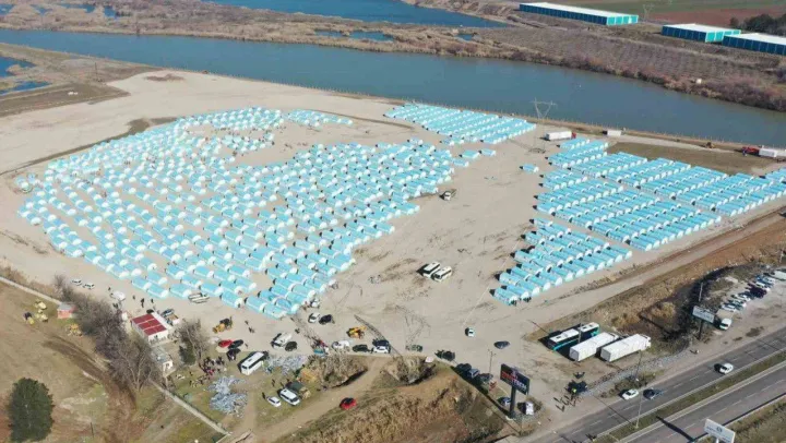 2 bin 200 çadırın kurulacağı alanda aşamalarda sona doğru geldi. Yapımı devam eden çadır kentin bini tamamlanmış olup, bugün veya yarın vatandaşların hizmetine açılacağı belirtildi.