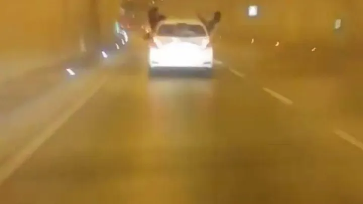 İstanbul'da yılbaşı kutlamaları sırasında ilginç görüntüler oluştu. Dolmabahçe Tüneli'nde seyir halindeki bir araçtan sarkan iki kişi, yılbaşı kutlaması yaptı. Tehlikeli yılbaşı kutlaması cep telefonu kamerasına yansıdı.