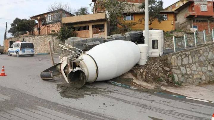 Kocaeli'nin Dilovası ilçesinde sürücüsünün, manevra yapacağı esnada direksiyon hakimiyetini kaybettiği beton mikseri devrildi. Sürücü kazadan yara almadan kurtuldu.