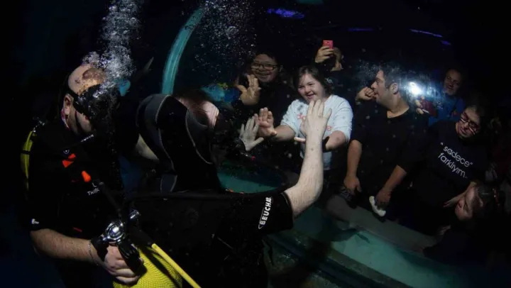 Down sendromlu bireyler yeni yılı akvaryuma dalışıyla kutladı