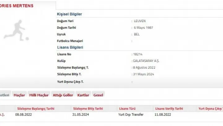 Galatasaray, mayıs sonunda sözleşmesi sona erecek olan Dries Mertens ile 1 yıl daha anlaştığını Türkiye Futbol Federasyonu'na (TFF) bildirdi. Sarı-kırmızılılar, Belçikalı futbolcunun gösterdiği başarılı performansla, sezon başında 1+1 yıllık sözleşme opsiyonunu kullanarak 2024 Haziran ayına kadar uzattı. 36 yaşındaki orta saha, bu sezon 31 resmi maçta 7 gol atarken, 4 asistlik performans sergiledi.